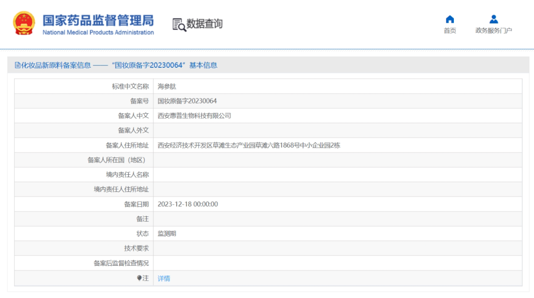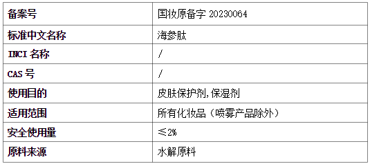 12月20日,惠普生物自主創(chuàng)新研發(fā)的化妝品新原料“海參肽”,成功通過(guò)國(guó)家藥品監(jiān)督管理局化妝品新原料備案(備案號(hào):國(guó)妝原備字20230064)。